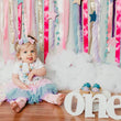 C'est une combinaison de 3 pièces comprenant un tutu, un body et un bandeau. Le tutu dispose de trois rangées de volants en tulle tricolore aux tonalités pastels : violet clair, bleu clair & rose clair. Il a une coupe évasée et patineuse. Sa taille est entièrement élastique pour un ajustement précis. Un joli noeud en tissu satiné rose clair orne le centre de la taille. Le body a un col rond et des manches courtes. Un imprimé licorne doré orné de trois fleurs 3D tricolores suivis de la mention "ONE" en grands caractères dorés pour annoncer l'âge de bébé sont mis en évidence au devant du body. Pour accessoiriser la tenue, un bandeau rose accompagne la tenue. Il contient trois fleurs tricolores sur lesquelles nous retrouvons des perles au centre de chaque fleur.