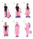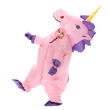 Tenue licorne gonflable rose avec une crinière, une queue et des pattes violettes. Nos déguisements gonflables licorne en polyester seront un élément clé pour toutes vos animations.