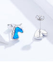 Donnez du style à votre tenue avec cette belle paire de boucle d'oreille licorne bleu océan. Cette paire en argent montre deux licornes avec l'intérieur bleu océan.