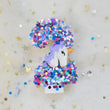 Bougie licorne à paillettes : des bougies anniversaire en forme de chiffres recouvertes de paillettes multicolores brillantes.