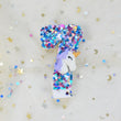 Choisissez cette jolie bougie en forme de chiffre à implanter au milieu de votre gâteau d'anniversaire. Celle-ci se démarque par ses paillettes multicolores brillants en guise d'ornements. Et pour couronner le tout, une jolie licorne blanche avec une crinière bleue ciel orne la face latérale de la bougie. Chiffre disponible : de 0 à 9.