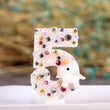 Cette jolie bougie en forme de chiffre est idéale pour agrémenter comme il faut votre gâteau d'anniversaire. Celle-ci se démarque par ses ornements en faux diamants aux couleurs vives et étincelantes. Et pour couronner le tout, une jolie licorne blanche orne la face latérale de la bougie. Chiffre disponible : de 0 à 9.