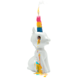 Bougie licorne qui pleure qui se compose de sa statuette en forme de licorne accompagnée de sa bougie multicolore représentant la corne de la licorne.