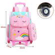 Cartable à roulette licorne confortable à transporter. On vote pour le cartable rose. Conçu pour être porté en sac à dos ou sur son support à roulettes. Le système à 3 roues de chaque côté permet de monter les marches et les trottoirs facilement.