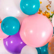 - Composition : ballons ronds multicolores, gros ballons licornes