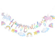 Cette guirlande licorne en papier est une pièce incontournable pour l'organisation de la décoration d'une fête d' anniversaire pour enfant. Elle se distingue le côté attrayant de ses motifs de dessins animés et sa grosse inscription "Happy Birthday".