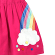 Jupe en jean aux motifs arc-en-ciel et licorne.