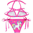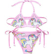 Avec ce maillot deux-pièces, votre fille sera toute aussi stylé que les demoiselles et les femmes sur la plage ou à la piscine. Elle va adorer nager ou prendre le bain de soleil avec ce bikini avec des motifs féeriques : licorne, arc-en-ciel, étoile filante et nuages.