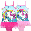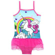 Maillot licorne tutu pour fillette : c'est un une-pièce imprimé avec des motifs féeriques.