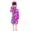 Peignoir licorne petite fille à capuche avec imprimés fuchsia, violet et bleu turquoise