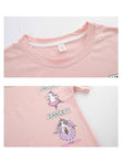 Un ensemble pyjama short et t-shirt licorne pour femme.