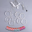 Ce rideau guirlande lumineuse licorne se compose d'un ensemble d'anneaux en plastique transparent blanc comprenant de petites ampoules LED intégrées à l'intérieur de chaque anneau. Les anneaux ont un diamètre de 10 cm. Nous retrouvons au centre de chacun des anneaux, une petite licorne en plastique multicolore. Chaque ampoule LED a une puissance de 5V avec une distance d'éclairage de 1 à 5 mètres. Ces guirlandes ne peuvent donc pas être utilisées en tant qu'éclairage principal. La longueur du rideau s'étend sur 3 mètres. Aucune télécommande n'est fournie dans le pack.