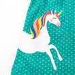 Jolie petite robe bleue turquoise à pois avec un imprimé de licorne sur le devant. Elle a une encolure arrondie et ne comporte pas de manche. On l'aime pour sa légèreté et sa facilité à l'enfilage avec ses 2 boutons pressions placés dans le haut du dos.