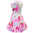 Cette robe blanche avec des motifs de licornes roses dégradés est idéale à porter pour les saisons estivales. Elle est légère, souple et soyeuse. Elle a une coupe évasée, ne comporte pas de manche et a une encolure ronde. Cerise sur le gâteau, elle est accompagnée d'un serre-tête licorne en guise d'accessoire complémentaire à la tenue.