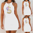 Mini-robe sans manches en coton avec une coupe ajustée, de fines bretelles et une encolure à l'américaine pour un look tendance et girly. C'est une robe couleur unie avec au devant un imprimé licorne dorée en forme de S majuscule.
