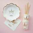 Assiette licorne bordure dorée pour une table chic et élégante. Parfaites pour un déjeuner champêtre, elles s'accorderont parfaitement à une nappe blanche et des couverts couleur gold.