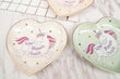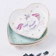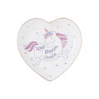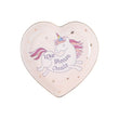 Assiette licorne coeur en porcelaine qui s'utilise comme plat à bonbons, plat à bagues ou tout simplement comme assiette décorative.