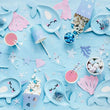 Assiette licorne dauphin. Un lot de 8 assiettes en papier en forme de dauphin bleu ciel doté d'une corne de licorne.