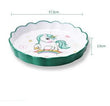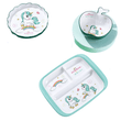 Assiette licorne en mélamine : un assortiment de vaisselle motif licorne pour servir les repas de bébé.