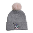 Bonnet Licorne Broderie Avec Pompon Fourrure