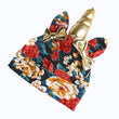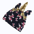 Il a un design pratiquement féminin avec ses motifs fleuris agrémentés de nœuds et de corne dorés. Idéal pour rester mignonne par temps froid, ce couvre chef peut être porté aussi en été ou tous les jours où il fait un peu frais.