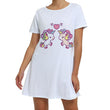 Une chemise de nuit licorne coton femme qui va faire fureur avec ses imprimés licornes Kawai "cute" placés au devant de la robe sur un fond blanc.