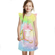 Chemise de nuit mancherons volantés licorne qui fera fureur grâce à ses belles associations de couleurs et ses volants fantaisies.