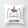 Housse de coussin chat licorne.