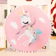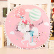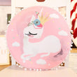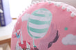 Un style très "girly" avec sa couleur rose et ses dessins licornes charmeuses. Le devant est imprimé avec 7 dessins différents : avec une licorne volante, des ballons, des nuages, des fleurs, une couronne... Le dos du coussin est de couleur rose pâle.
