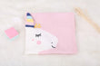 Couverture licorne tricot rose ou bleue.