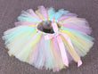Le tutu est conçu en tissu voilage multicolore. Il a une coupe évasée et patineuse, une taille élastique pour un ajustement précis et un joli noeud confectionné avec un ruban rose est centré à sa taille. Le serre-tête licorne est doté d'une corne bleu ciel, de deux oreilles dorées à bordures blanches et d'une couronne florale multicolore. Il est disponible pour tous les âges.