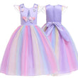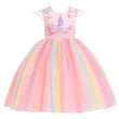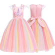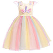Pour un Carnaval ou une soirée déguisée, choisissez cette robe de princesse licorne pour représenter au mieux votre animal préféré. Elle a une coupe évasée et patineuse, un col arrondi, ne comporte aucune manche, est dotée de jolis volants fantaisies conçus en tissu voilage transparent aux épaules et est froncée à la taille. Au devant du buste de la robe, nous retrouvons un bel imprimé licorne avec des motifs floraux 3D confectionnés avec du tissu satiné. Le jupon quant à lui est en tulle multicolore. Deux détails caractérisent l'arrière de la robe : une fermeture zippée pour faciliter l'enfilage et un joli noeud centré au niveau de la taille. Une robe à couper le souffle qui fera plus que plaisir à la prunelle de vos yeux.