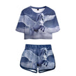 C'est un t-shirt à manches courtes, avec une encolure ronde et une longueur allant juste au-dessus du nombril. Il est associé à un mini-short doté d'une taille élastique à bande large et de deux poches sur les côtés. Une tenue à la fois légère, simple mais charmante !