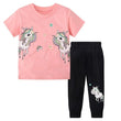 Ensemble en coton pour fille composé d'un t-shirt et d'un jogging. Le t-shirt a des manches courtes et un col rond.