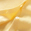 Ouvert sur le devant à l'aide de six petits boutons, ce petit gilet tricoté de couleur jaune, est facile à enfiler, doux et surtout stylé avec ses deux têtes de licorne et son arc-en-ciel pailletés ainsi que ses six étoiles brodées.