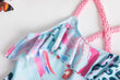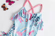 Maillot de bain licorne fille : un une-pièce à motifs multicolores ; la pièce idéale à porter pour une journée piscine ou plage.