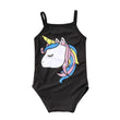 Maillot de bain licorne fillette à bretelles fines : une tenue de baignade simple, accomodante et confortable.