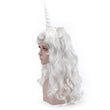 Cette fausse chevelure blanche rehaussée d'une corne de licorne saura toujours mettre en valeur votre beauté naturelle.