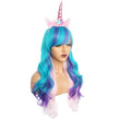 Vous avez toujours rêvé d'avoir de longs cheveux ondulés et colorés ? Adoptez cette perruque turquoise avec serre-tête licorne pour changer complètement de tête.