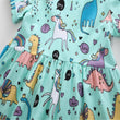 Une robe licorne vivante avec ses nombreux motifs imprimés et ses couleurs.