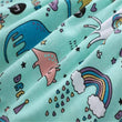 Robe en coton imprimée de licornes. Nous l'aimons pour sa simplicité, sa douceur et sa légèreté ! Elle a une coupe évasée et ample avec un col arrondi, des manches courtes et est légèrement froncée à la taille.