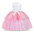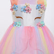 Prête à se glisser dans la peau d'une licorne magicienne ? Enfilez vite cette jolie robe longue licorne ! Elle a une coupe évasée, un col arrondi, ne comporte aucune manche et contient une fermeture zippée à l'arrière pour faciliter l'enfilage ainsi qu'un beau nœud blanc centré au niveau de la taille. Au devant, nous retrouvons un imprimé licorne associé à des fleurs 3D tricolores qui ont été confectionnées avec du tissu. Une pierre argentée est placée au centre de chaque fleur en guise d'ornement. Le jupon de la robe quant à lui est en tulle et est surmonté de volants multicolores pour apporter encore plus de charme à la robe. Vous pouvez choisir d'accompagner ou pas cette robe avec deux accessoires : un serre-tête licorne, une paire d'ailes multicolores et bien sûr une baguette magique ! Alors, n'attendez plus, offrez-lui cette belle robe qui tourne qui n'attend plus que votre fille pour la faire tourbillonner.