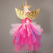Robe licorne papillon rose avec ailes et serre-tête dorés