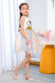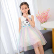 Des sequins et de grosses étoiles argentées pour illuminer toutes les petites filles grâce à cette robe princesse licorne sequins.