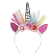 Rajouter une touche de fantaisie à votre tenue licorne en optant pour ce joli serre-tête licorne fille surmonté d'une corne et de 2 oreilles de licorne pailletées, d'ornements floraux artificiels et de tissu voilage. Disponible en 5 couleurs, ce serre-tête est à la fois solide et charmant.
