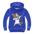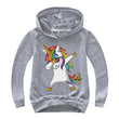 Marre des licornes au pays des arc-en-ciel ? Adoptez sa version cool, la licorne qui dab, avec ce pull à capuche pour enfant.
