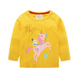 Tee shirt jaune licorne manches longues pour enfant et bébé.