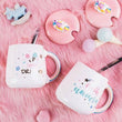 Tasse Licorne avec couvercle, une cuillère et une anse en arc-en-ciel.