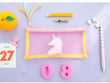 Pochette licorne pour crayons transparente.