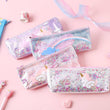 Des paillettes, une licorne et des nuages. Voici l'univers magique des licornes. Le devant de la trousse intègre des centaines de petites paillettes.